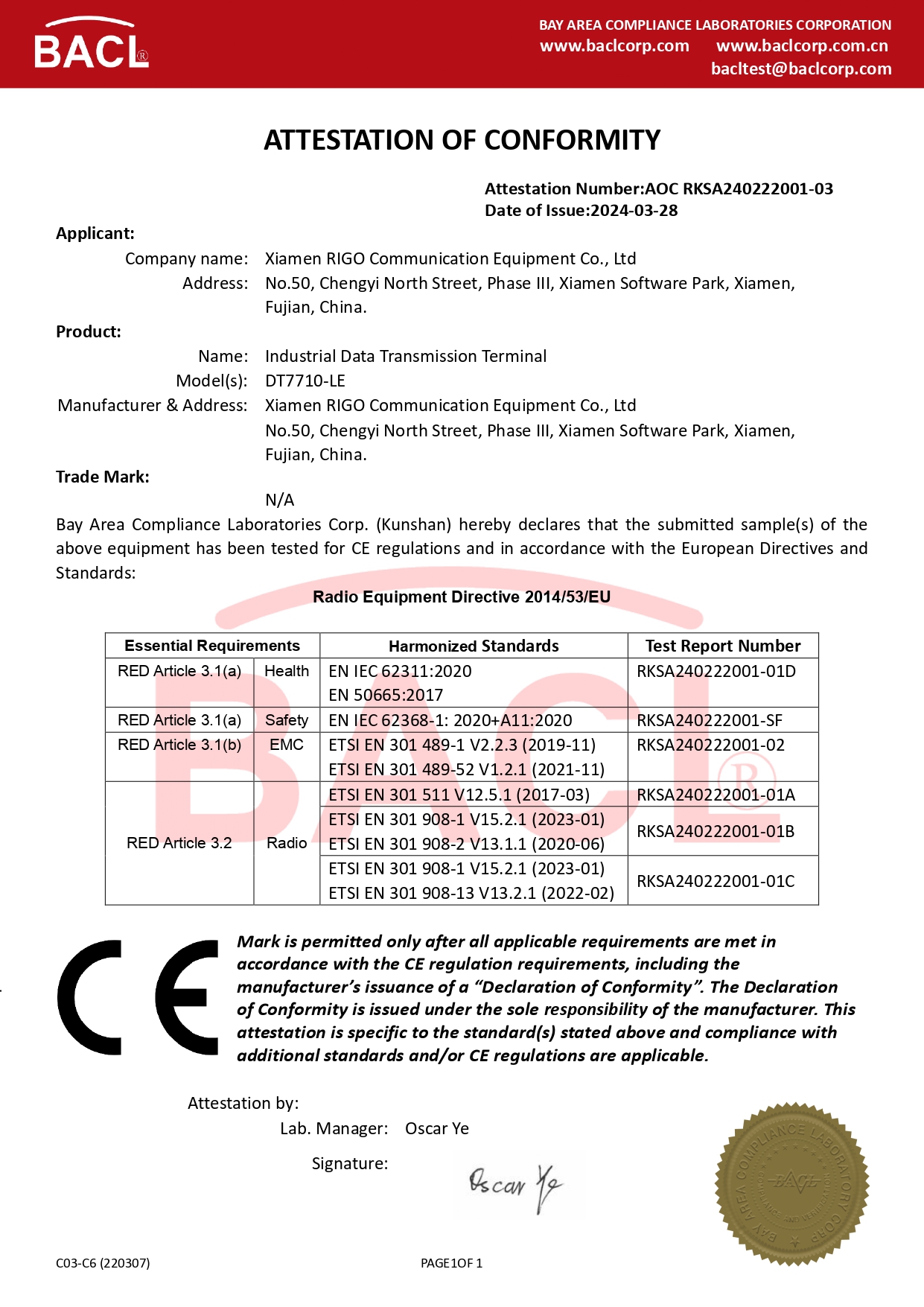 CE-RED認證證書